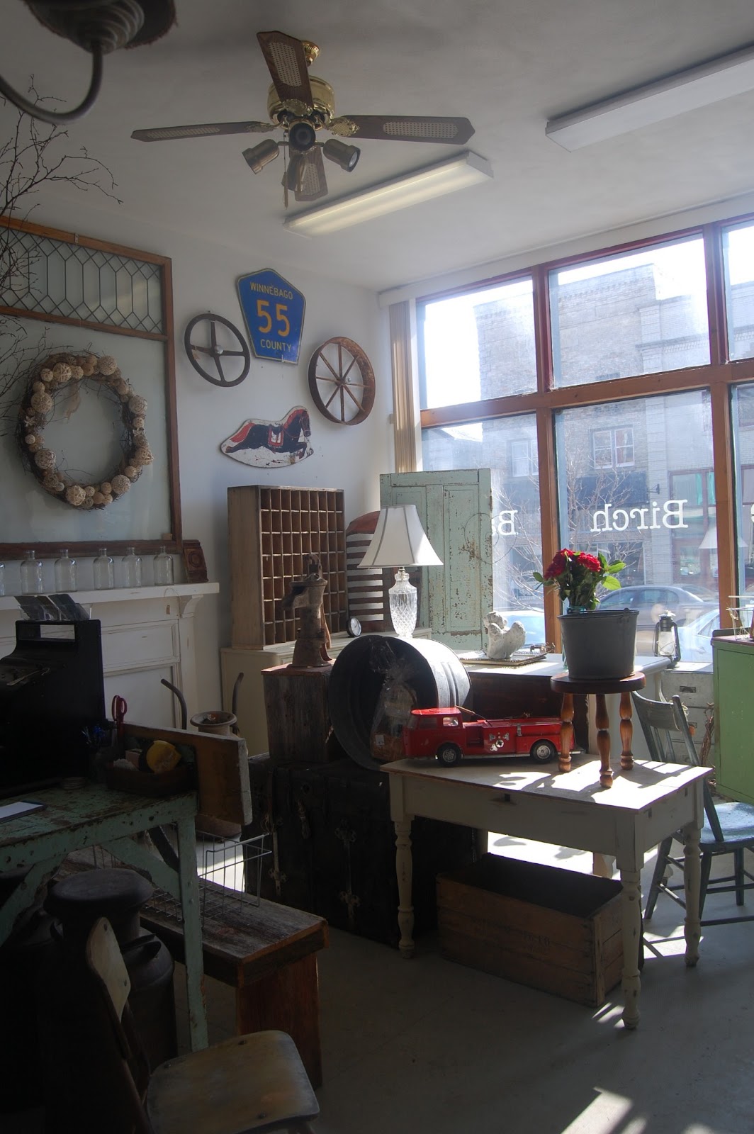 Vintage Birch Barn, located in Evansville, Wisconsin. I've known the owner since childhood; she is the younger sister of a dear friend. During the week she and her husband go "picking". They tighten, sand, scrub, and paint. The end result is what someone once viewed as ugly, rusty junk, transforms into a decorating find for someone else.